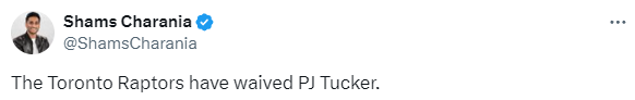 北京时间3月1日,据名记shams报道,猛龙队已经裁掉了39岁的老将PJ-塔克;赛季至今,塔克还没有出战过,如今被裁,或就此退役结束NBA生涯。